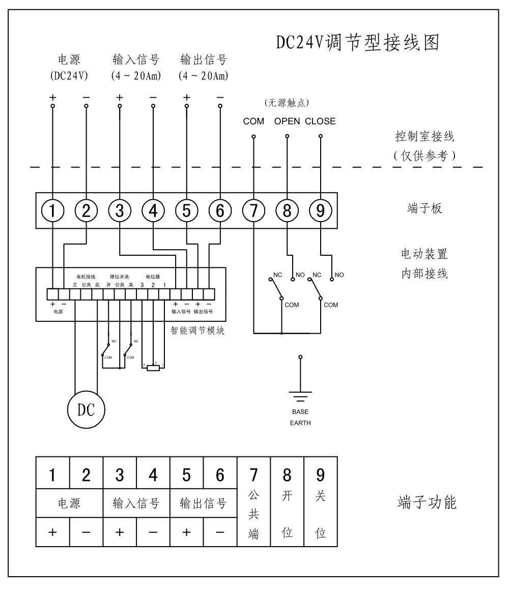 DC24V調(diào)節(jié)型電動蝶閥接線圖(4-20mA)