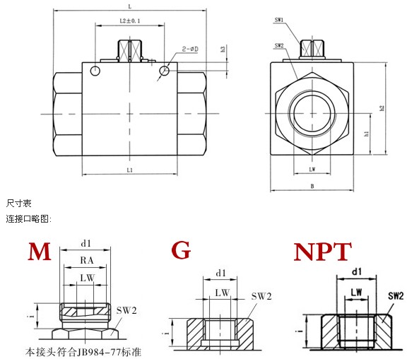 內螺紋高壓球閥連接尺寸: