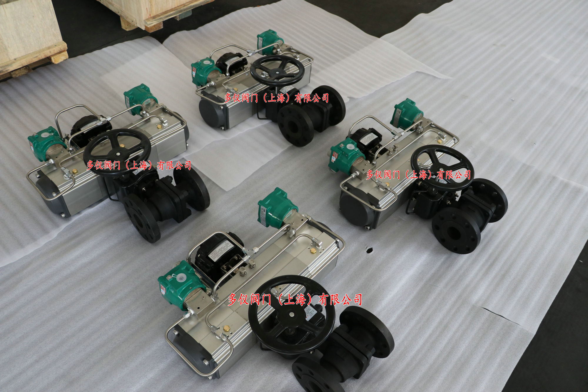 氣動三段式球閥通常由三段式氣動執(zhí)行器,二或三個電磁閥及相關(guān)附件組成,通過改變附加氣缸的活塞行程,執(zhí)行器和閥門轉(zhuǎn)角被停止在預先設定的角度(45°-90°),因此閥門流量得以調(diào)節(jié),這種裝置靠兩個電磁閥控制閥門的流量。此裝置在調(diào)節(jié)到需要的位置后,可以在長期的工作周期中保持持久不變的計量精度。